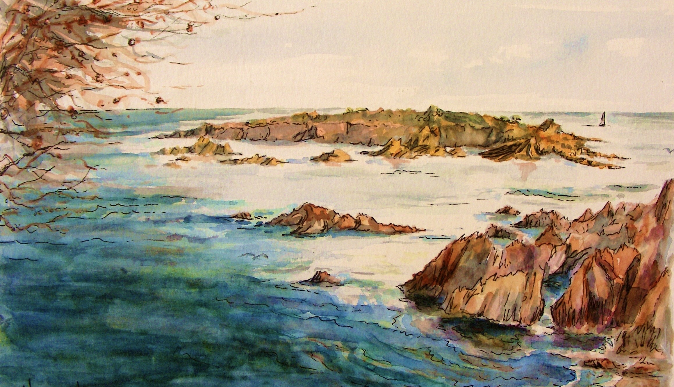 Red Rocks of the Esterel, Cote d'Azur (Watercolour & Pen)