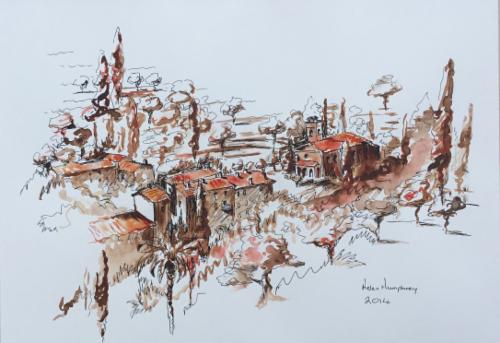 Magagnosc Village - South of France (Watercolour and Pen)