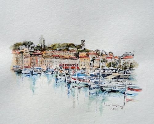 View to Le Suquet, Cannes (Watercolour)