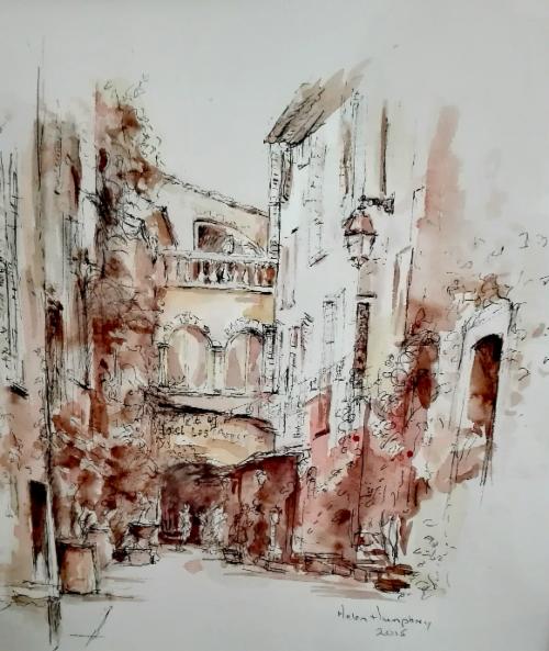 Rue des Arcades, Valbonne - Cote d'Azur (Watercolour & Pen)